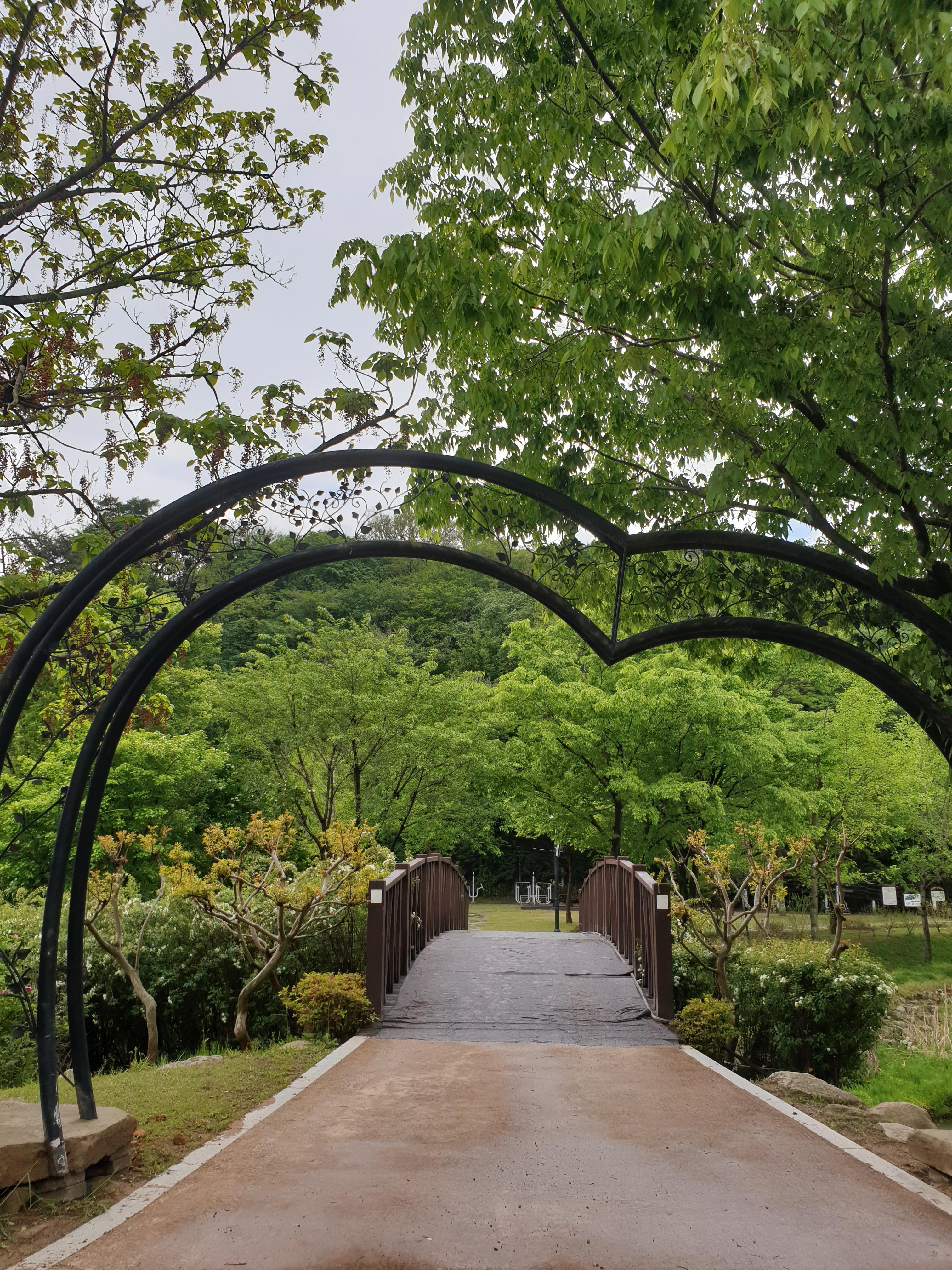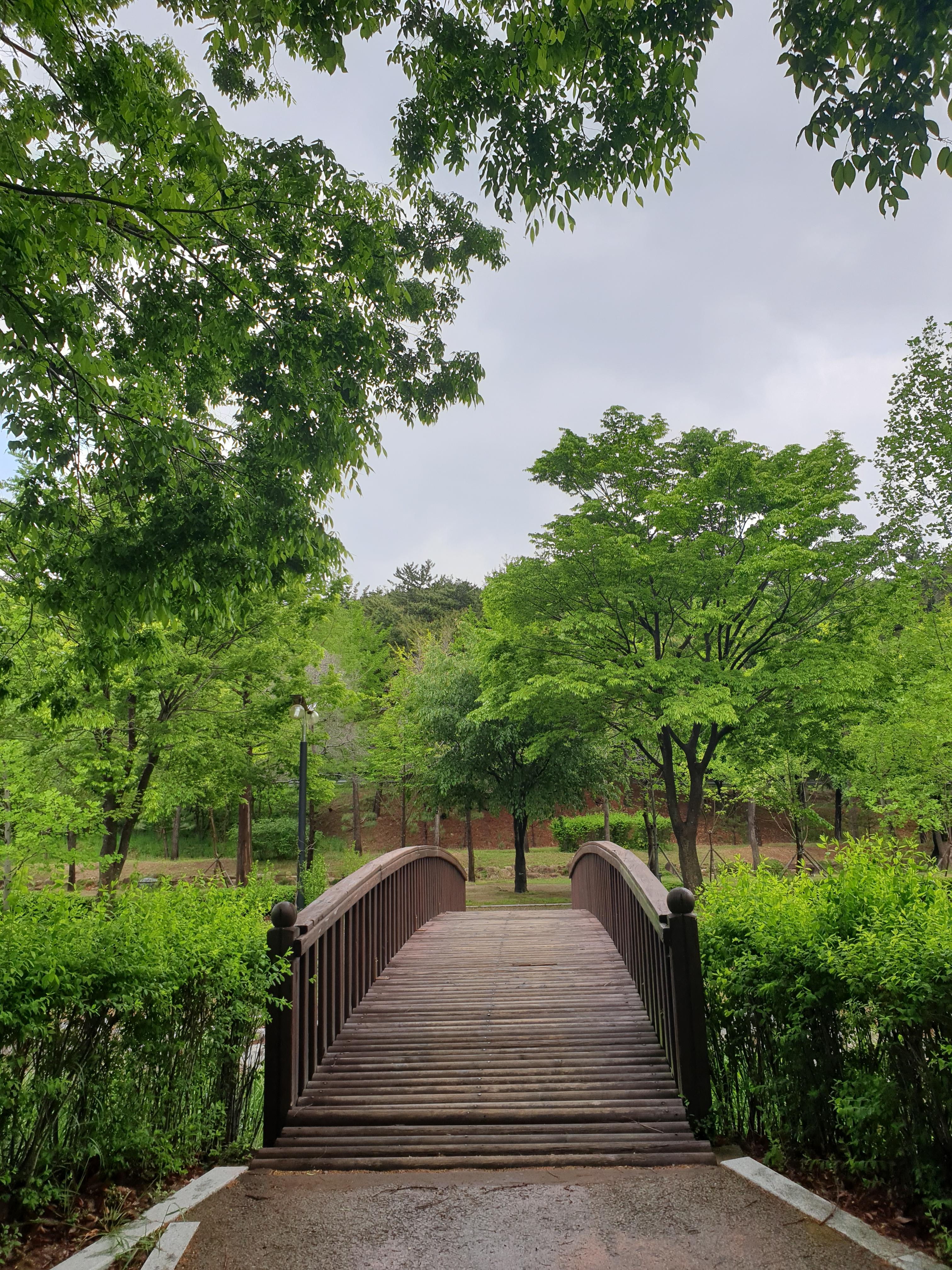 공연장을 지나면 이렇게 구름다리를 만납니다. 기다란 작은 개울가를 사이에 두고 양쪽으로 길이 쫙 나 있는데 일단 구름다리를 건너 반대편 길부터 가봅니다.