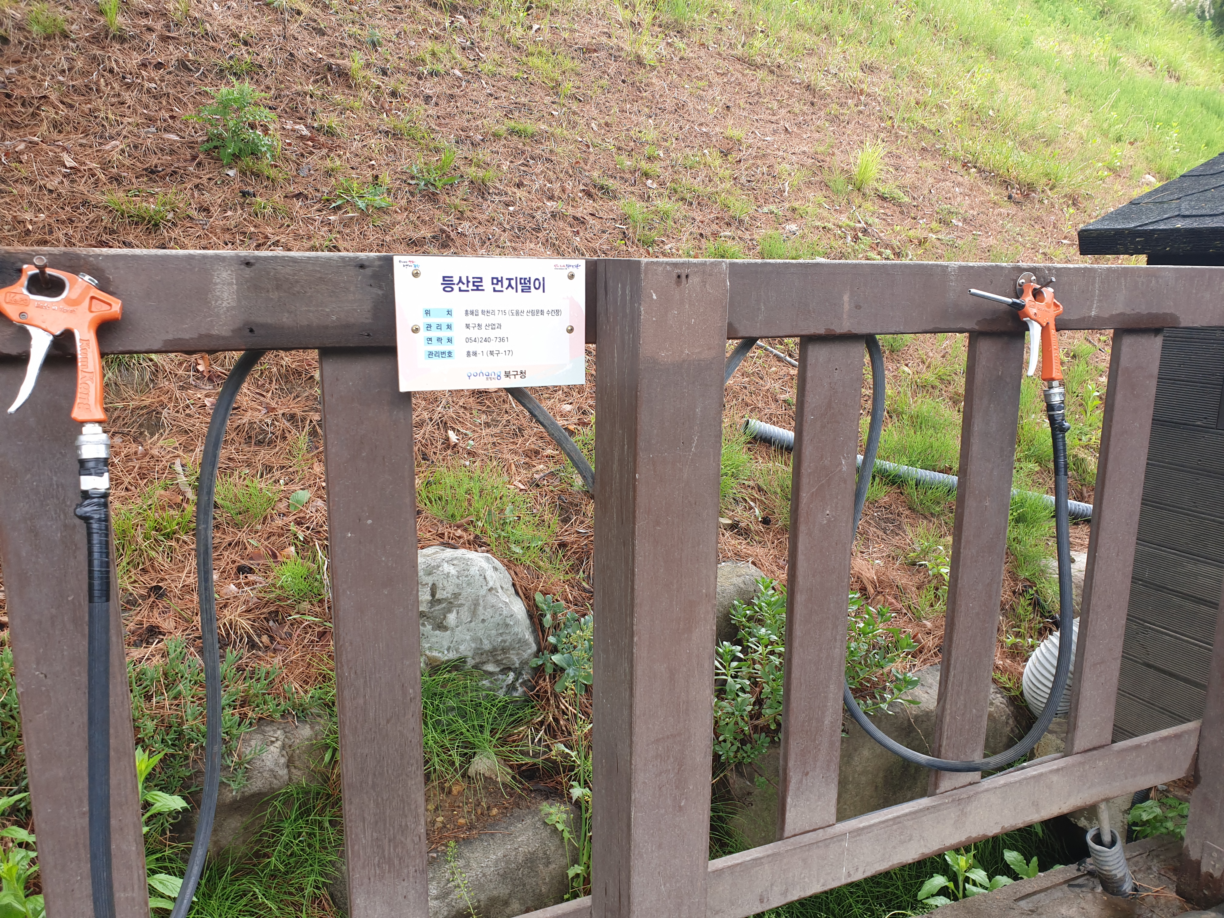 다리나 발에 묻은 먼지는 털어주고 가야겠죠? 취치칙 소리와 함께 오늘의 산림욕 끄읕~~ 참 여름이 되면 벌레들도 말썽이죠~~ 입구에 해충 기피제 자동 분사기(5세미만 사용금지)도 준비되어 있으니 걱정 마세요ㅎㅎ 비온 뒤 산림욕 참 괜찮네요. 이웃님들도 동네 나무들 많은 곳으로 산림욕 떠나보세요~^^