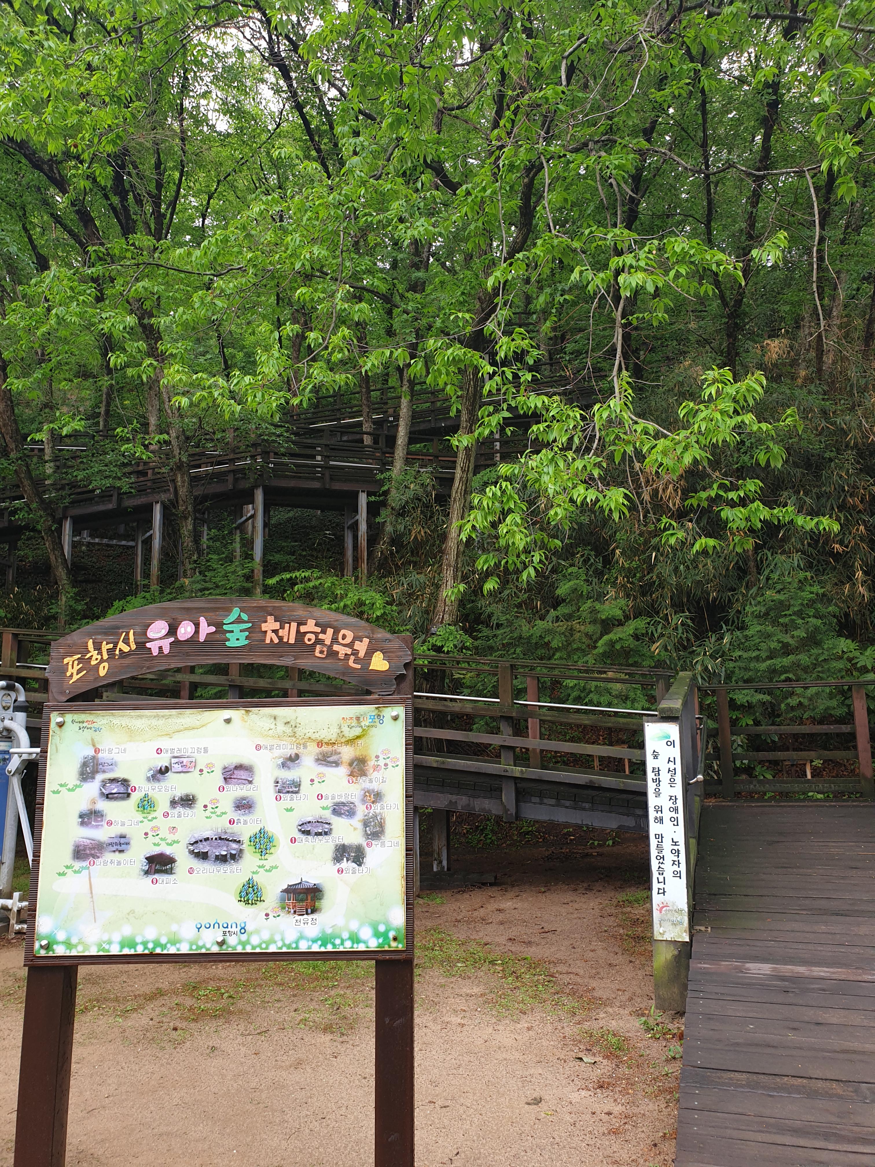 그곳엔 포항시 유아 숲 체험원이 있습니다. 저 데크길로 위로 쭉 올라가면 체험원이 나오는데요, 아이들과 가서 시간보내기 좋습니다. 한여름엔 모기주의ㅋㅋ