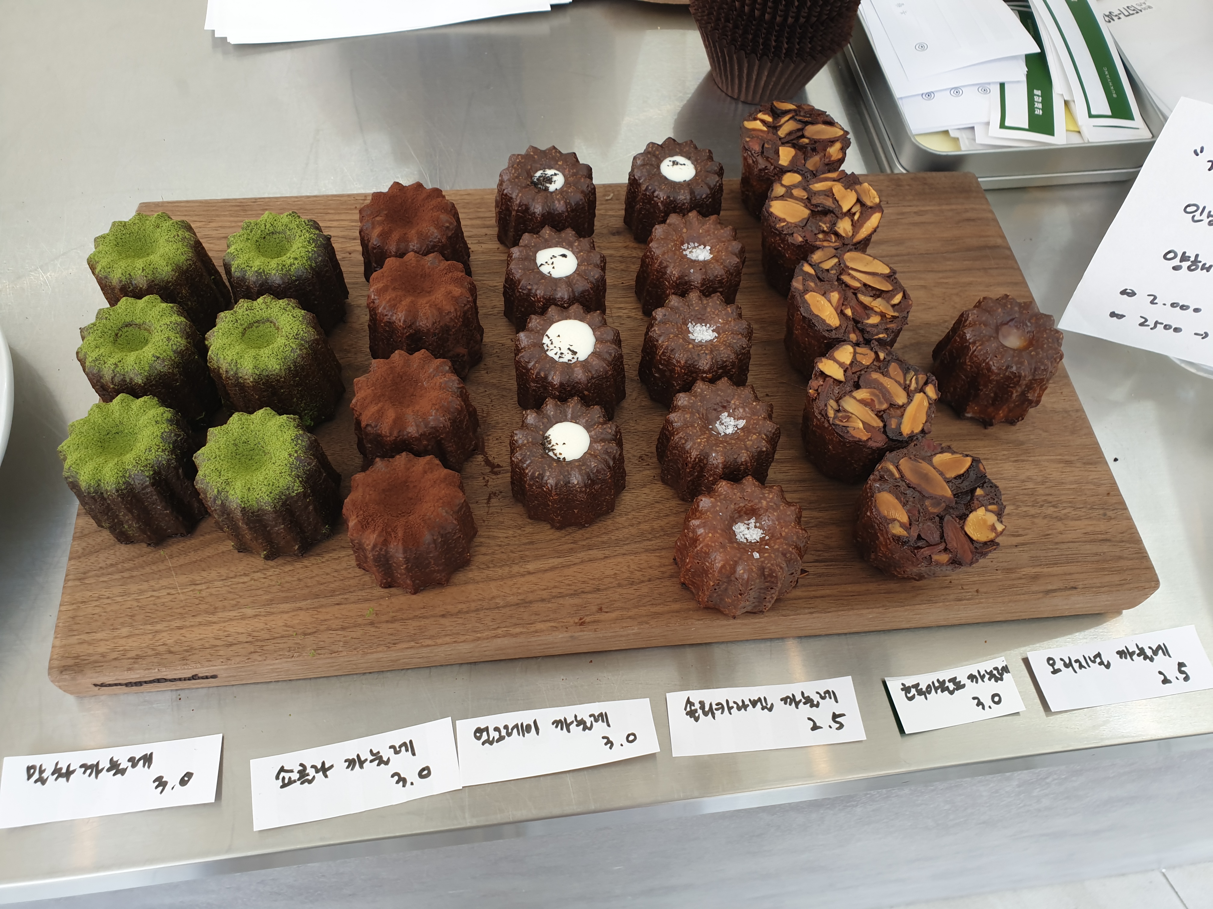북향제과에서 젤 잘 팔린다는 까눌레~~ 종류도 다양하고 색감마저 예쁘네ㅎㅎ 오리지널 까눌레는 벌써 하나밖에 안 남았다.
