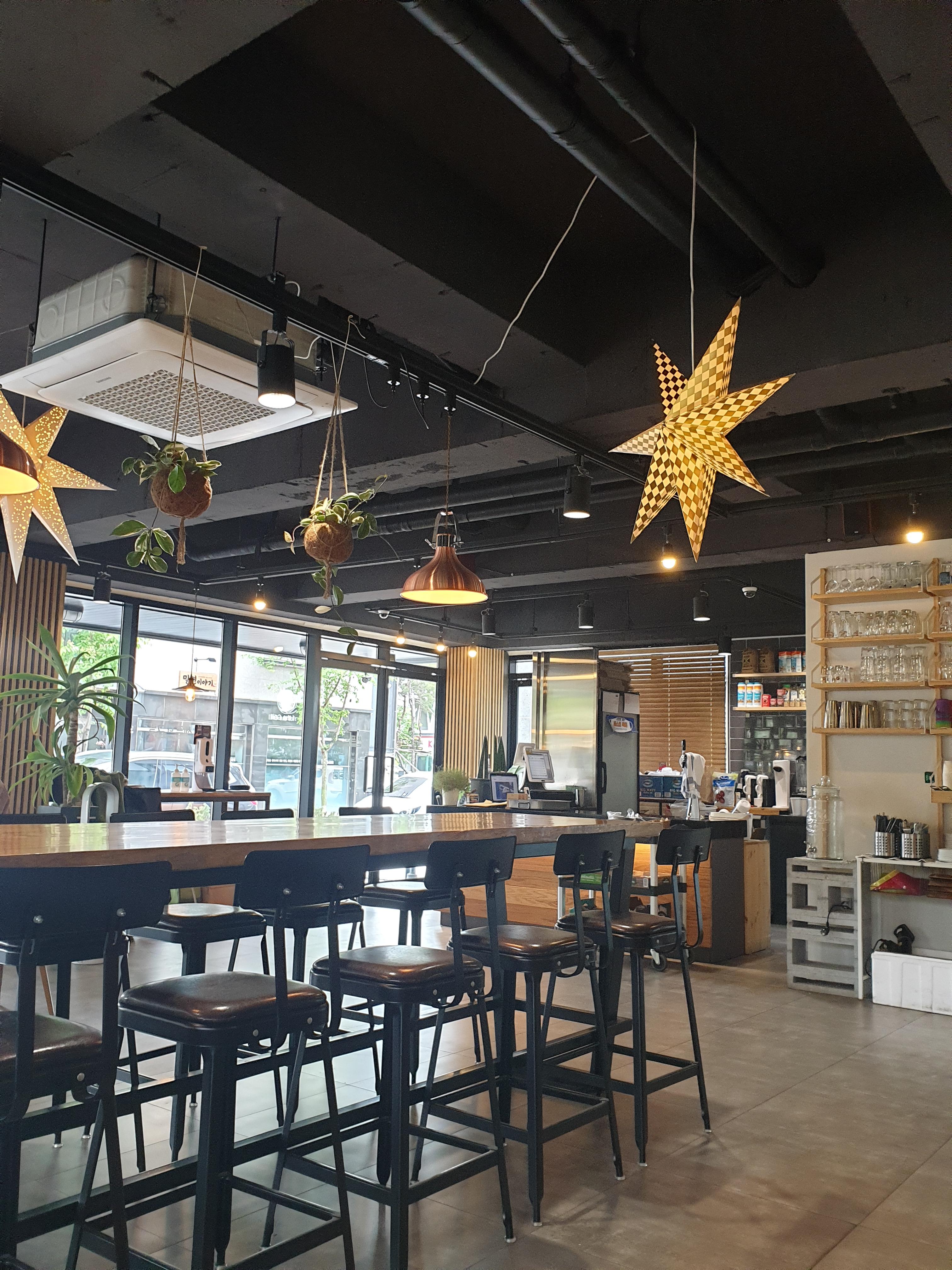 가게 분위기 무엇? 감각적인 전등 인테리어와 창 밖 초록이들의 조화가 멋진 곳이네요.