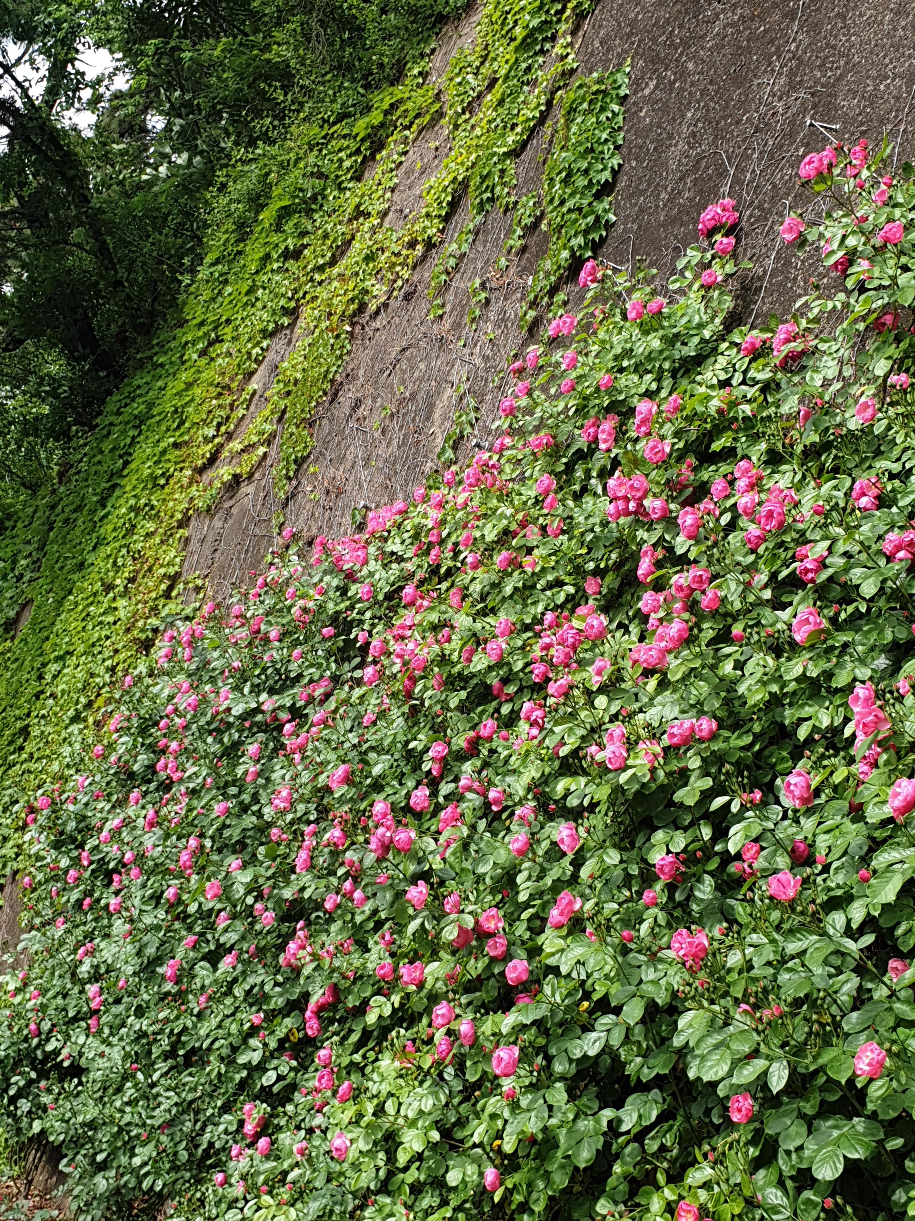 담벼락에 가득 핀 이 장미의 이름은 바로 함부르크 피닉스!