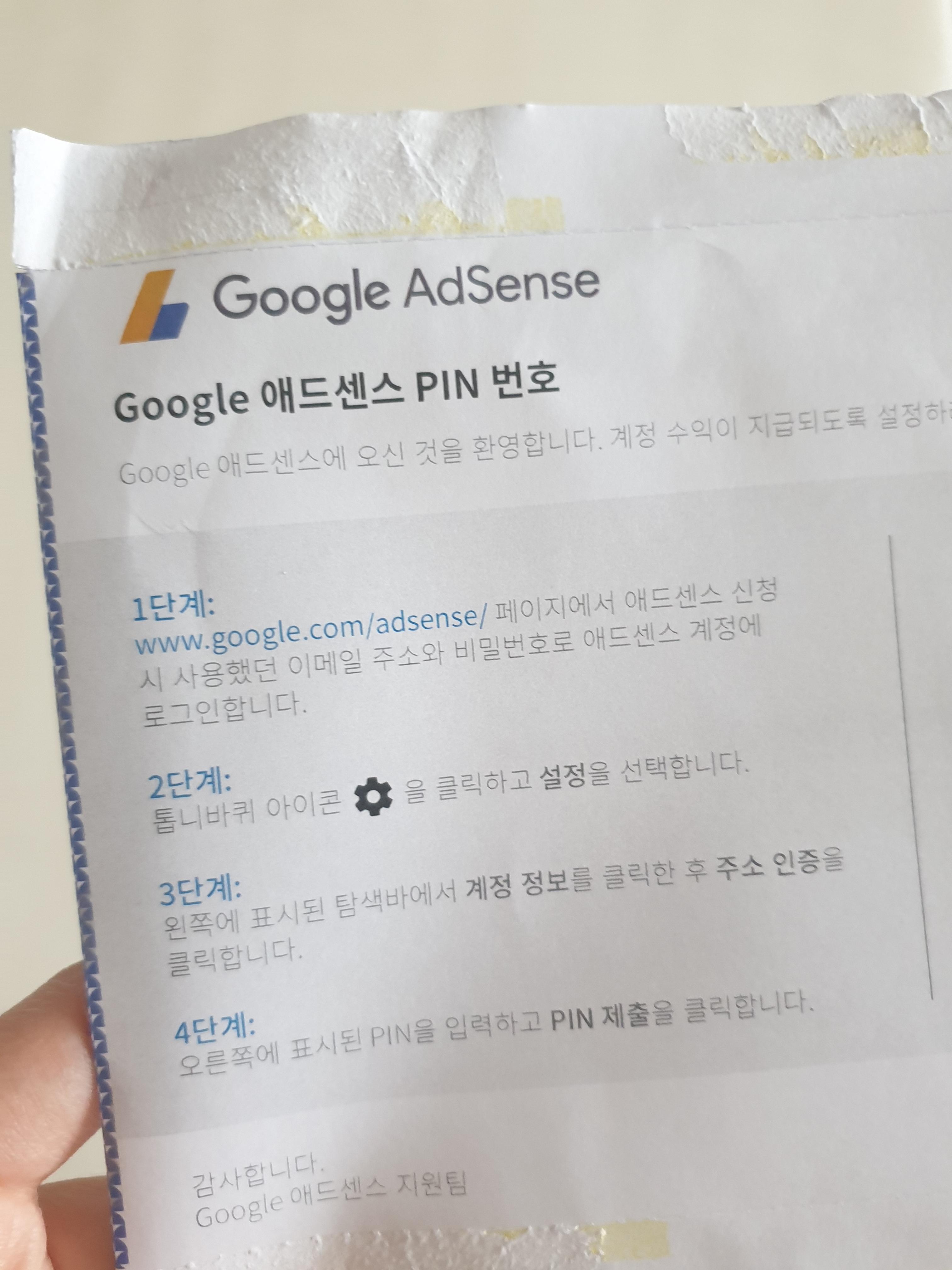그렇게 지내고 있었는데.. 지난 화요일에 집으로 온 이 하얀 봉투 한 장ㅋㅋ 잊고있던 구글 애드센스 핀번호가 도착했네요!