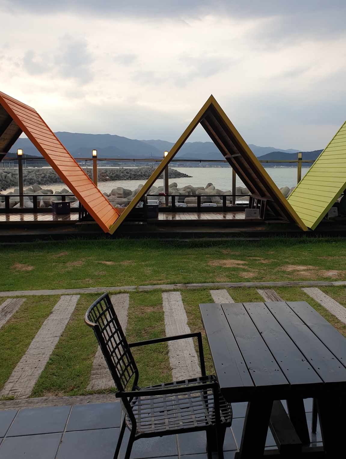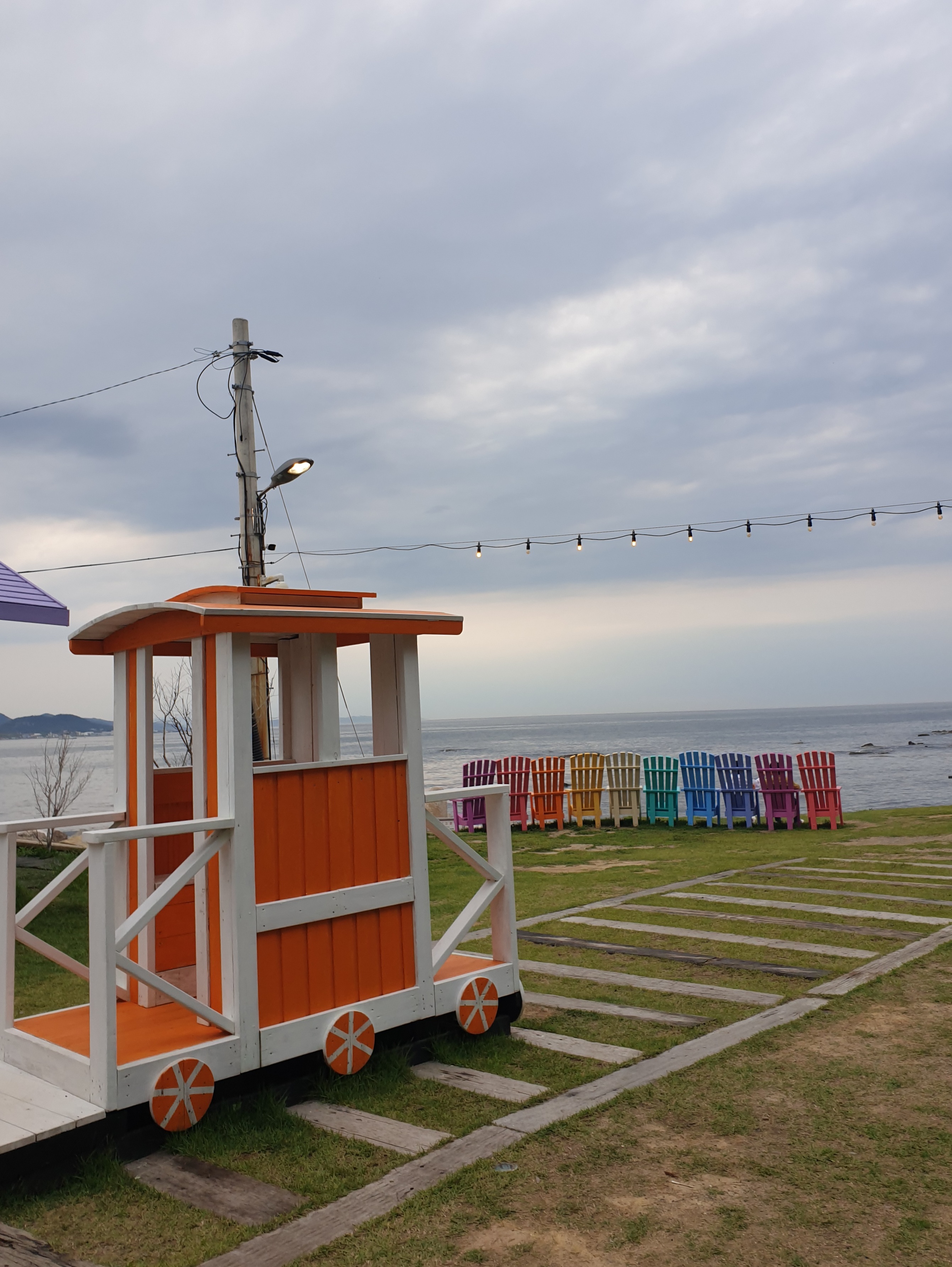아이들이 넘 좋아할 만한 오렌지색 기차모형도 생기고(아이들의 놀이터가 됨ㅋㅋ) 바다를 바라보는 알록달록 의자들도 생겼네요. 곳곳이 알록달록하니 기분이 넘 좋아 지더라구요~!