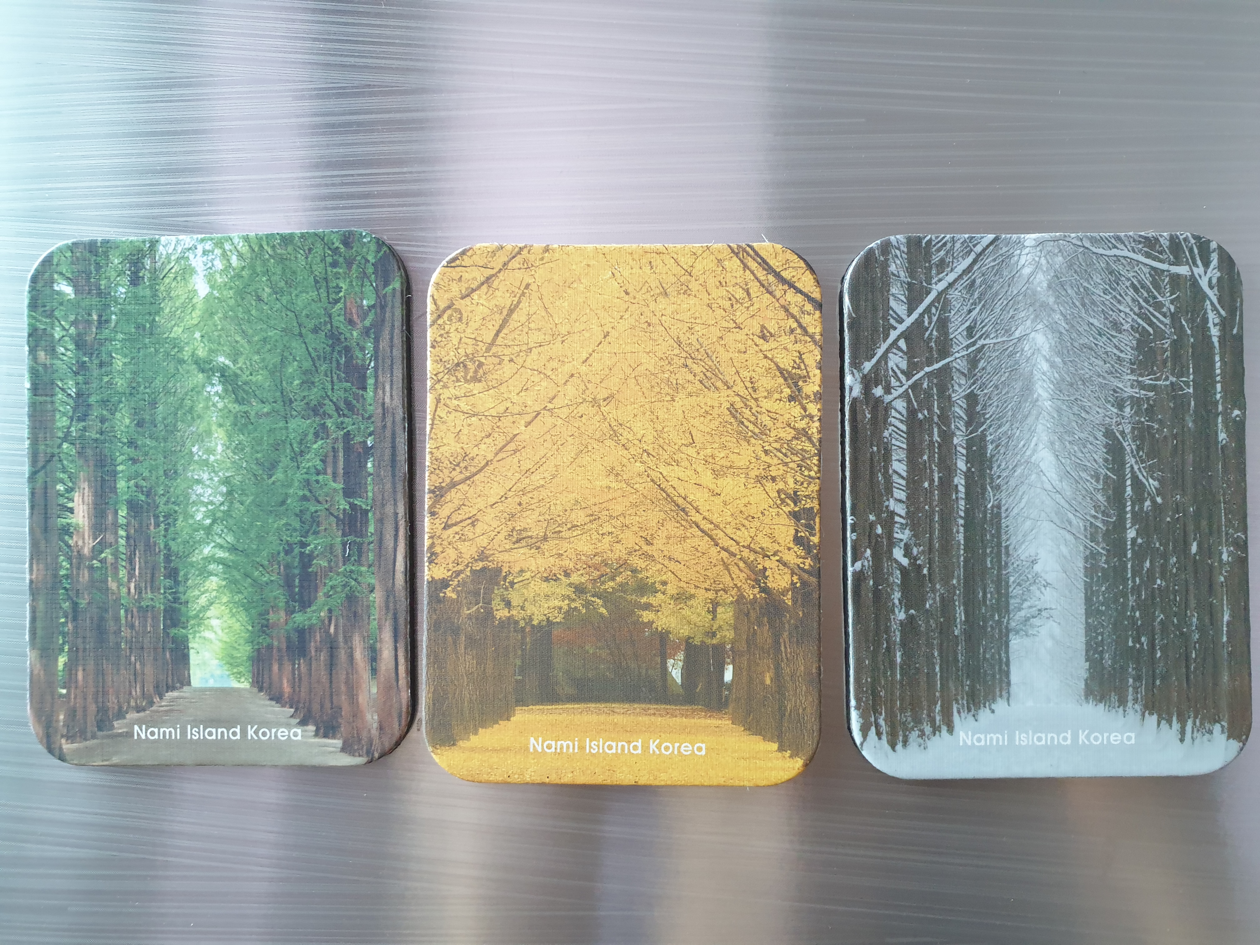 몇년 전에 남이섬 갔을 때 기념품으로 사 온 마그네틱 냉장고 자석이에요. 메타세콰이어 길의 여름 가을 겨울이 담겨져 있어서 볼 때마다 남이섬 가고 싶다는ㅎㅎ 어서 코로나가 끝나서 가을날의 남이섬 다시 한번 보러 가고 싶네요.