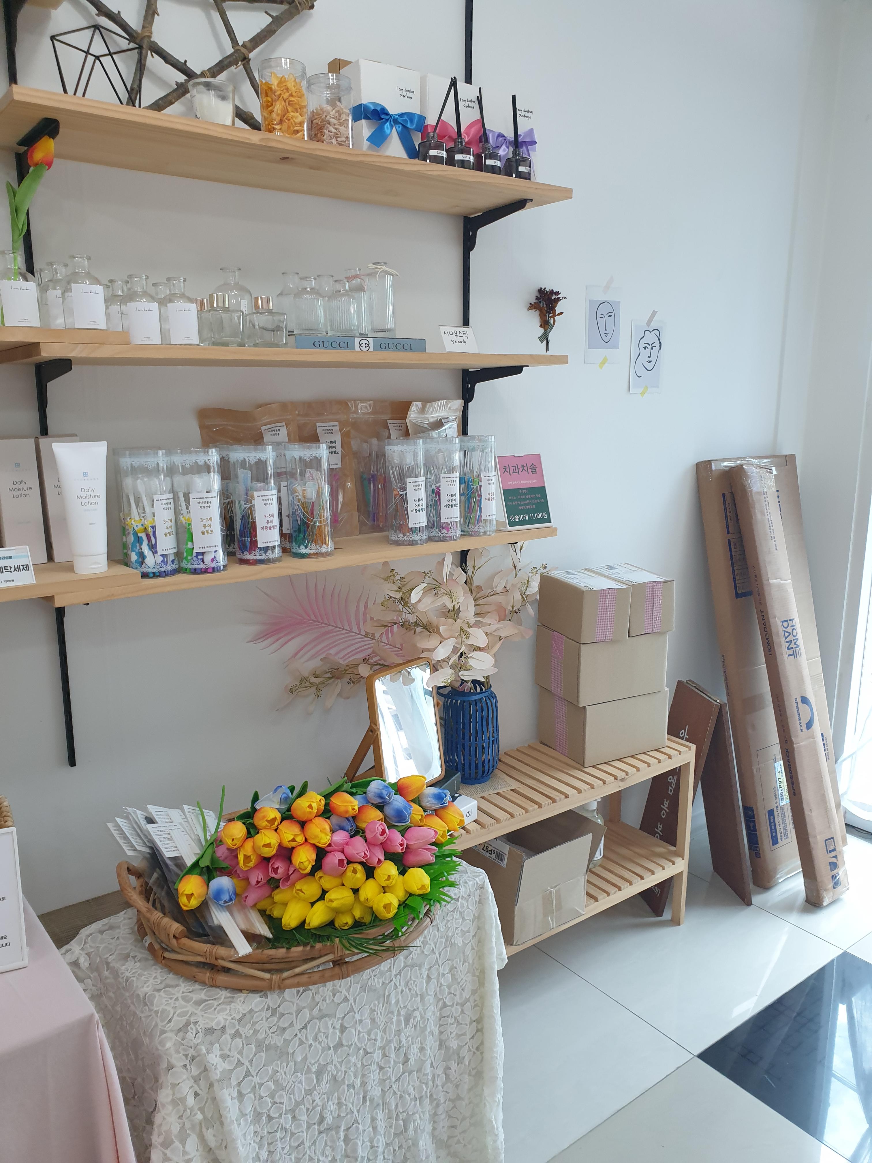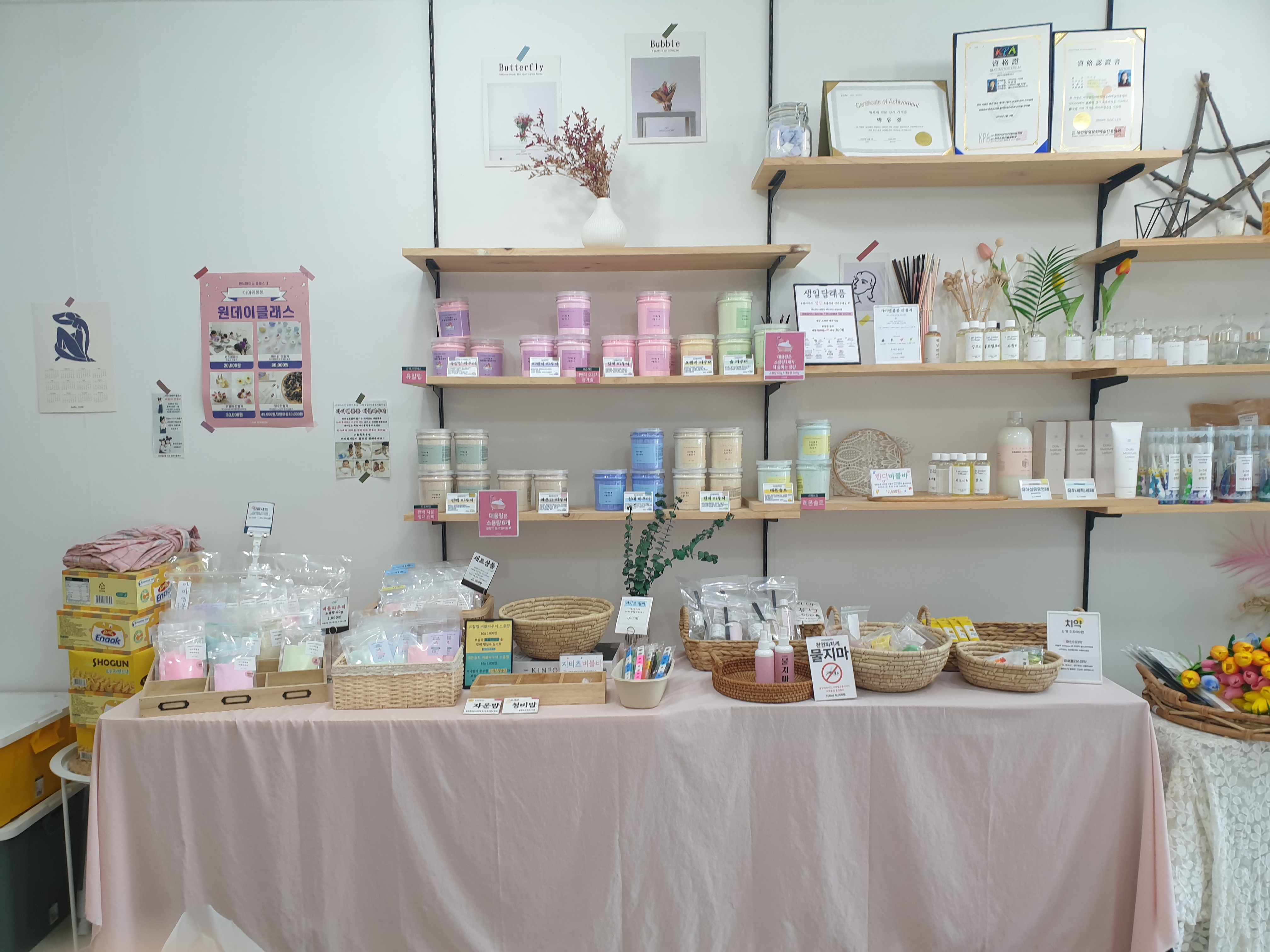 공방 들어서자마자 눈이 휘둥그레~~ 입욕제부터 칫솔 치약 모기팔찌 등등 실용적인 물품들이 한가득~~