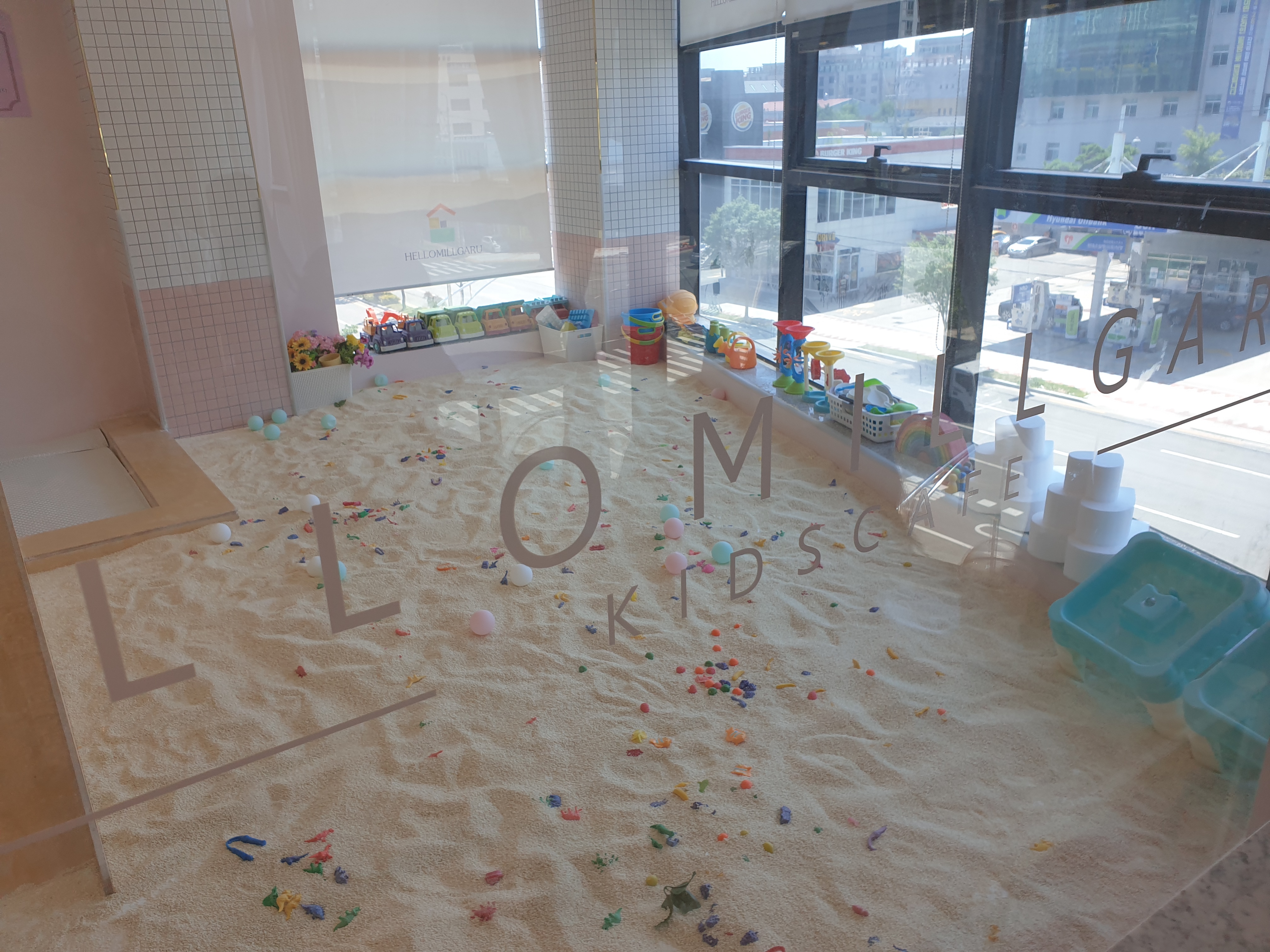 이 곳은 보기만 해도 부드러워 보이는 뽀얀 밀가루가 가득한 밀가루 체험존! 집에선 엄두도 안나는 밀가루 체험을 아이들에게 선물해 줄 수 있습니다. 소품들도 다양해서 아이들이 각자의 취향에 맞게 소품에 밀가루 넣고 뿌리고 바르며 즐겁게 놀더라구요.