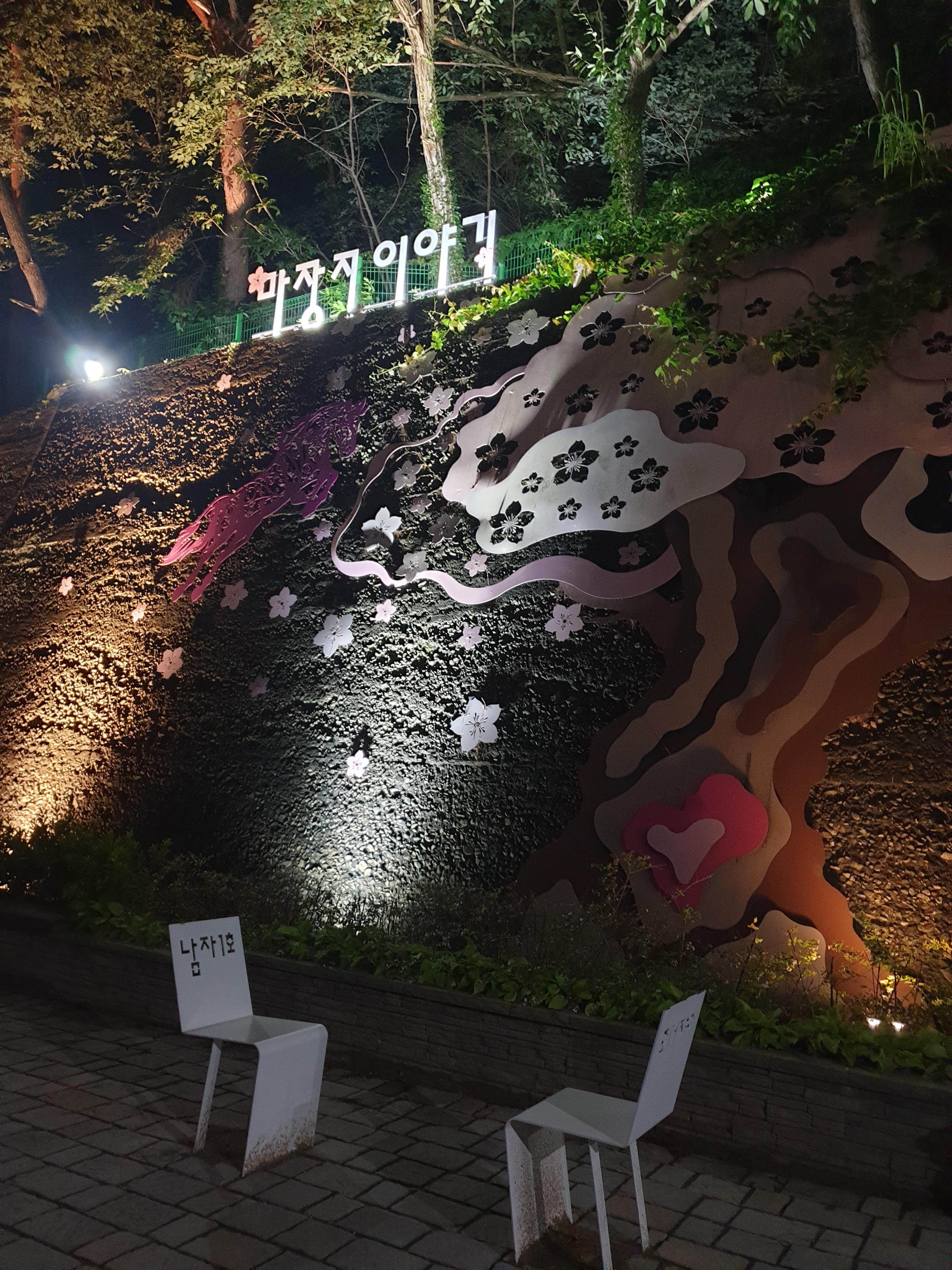 저녁을 먹고 운동삼아 가족들과 걸어가 본 마장지! 그러고보니 아침 마장지는 익숙한데 저녁엔 처음 와봤네요. 불 들어온 마장지가 너무 예뻐 우와우와 감탄하며 걸었습니다.