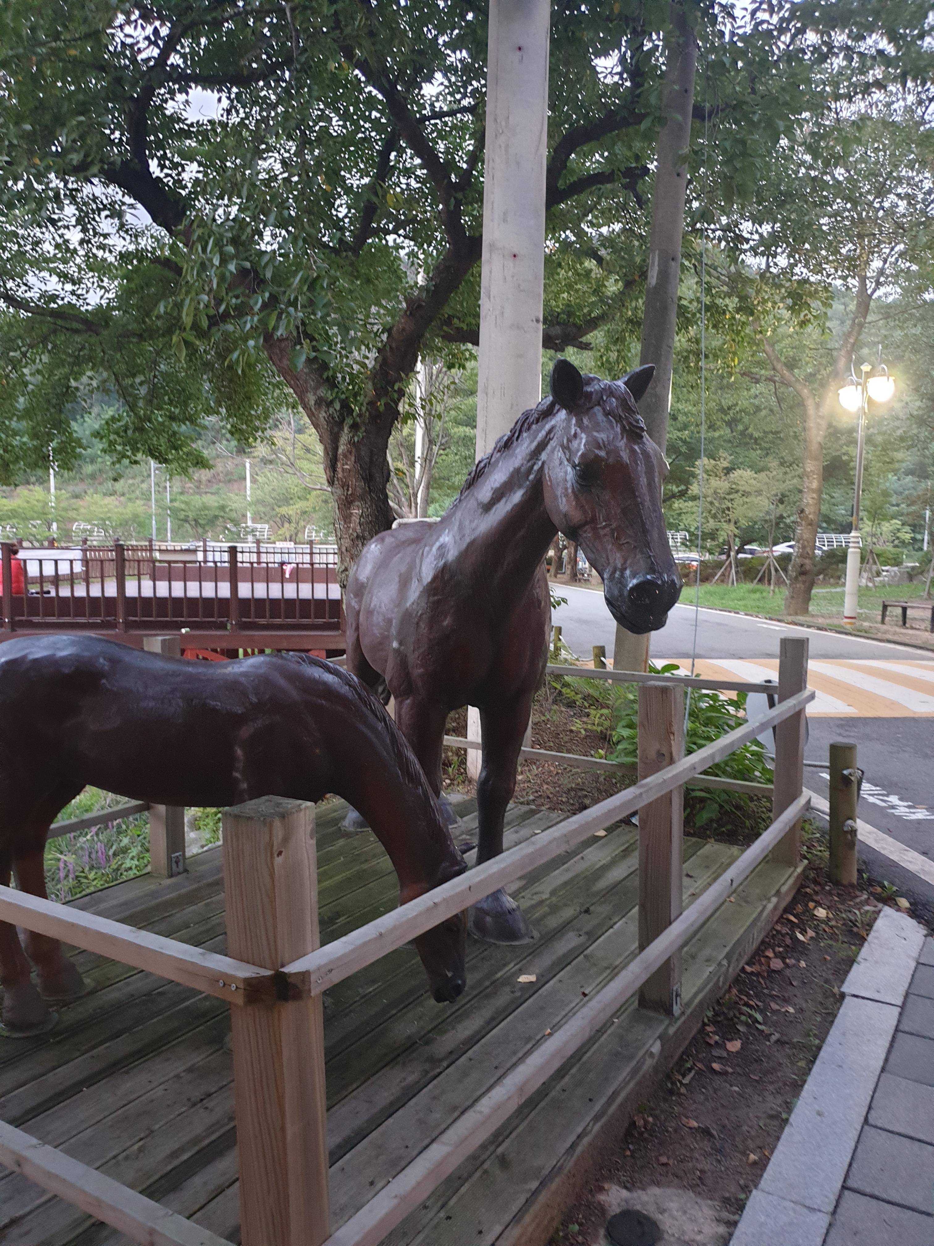 오늘도 반갑게 말들과 인사를ㅎ 사람들이 자꾸 들어가서 만지고 해서 들어가지 못하게 앞쪽으로도 펜스를 쳐놓았더라구요.