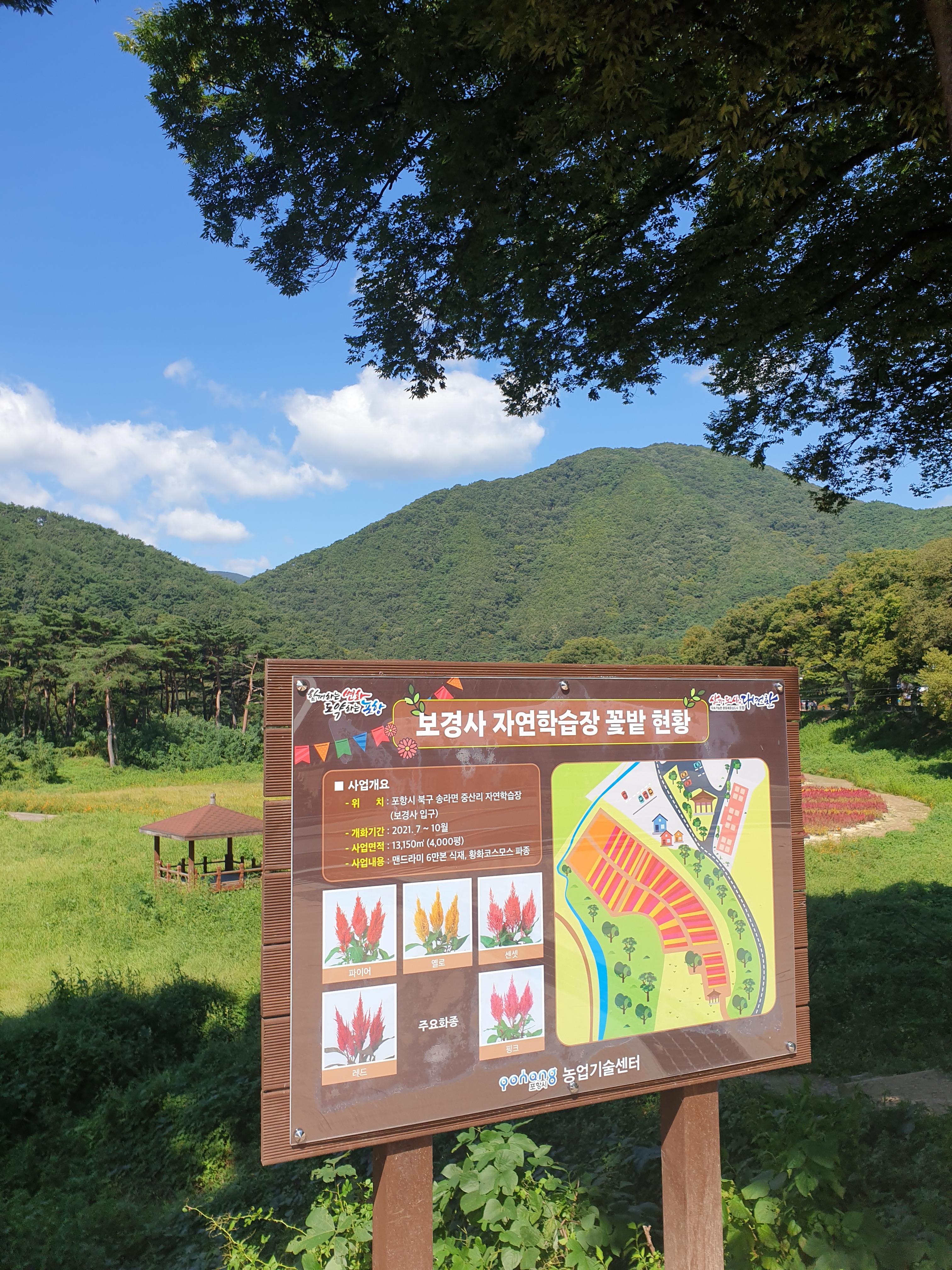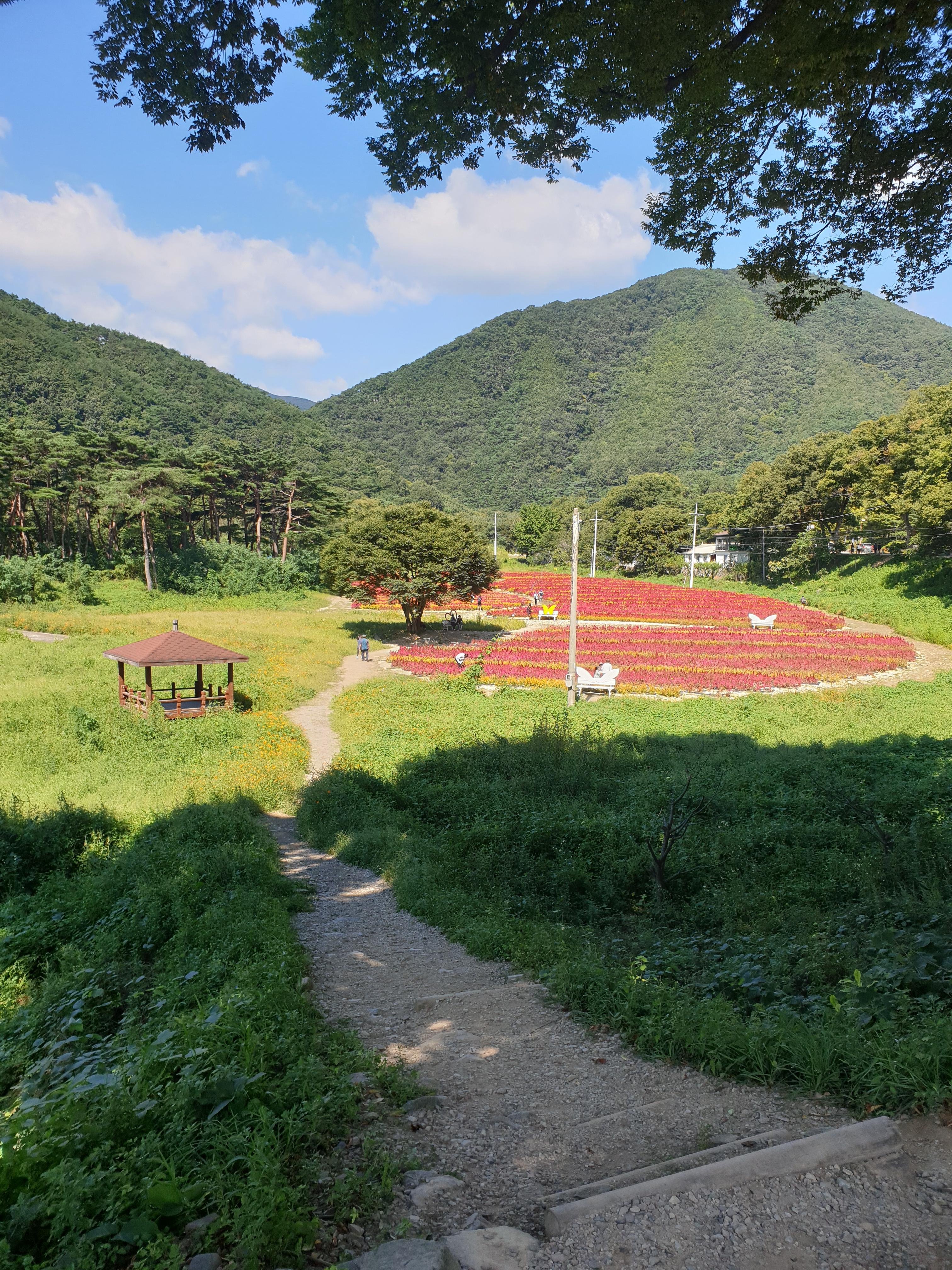 보경사 내연산 주차장에 주차하고 식당가를 지나 조금 걷다보면 저 멀리 빨갛게 보이는 곳이 맨드라미 꽃밭!