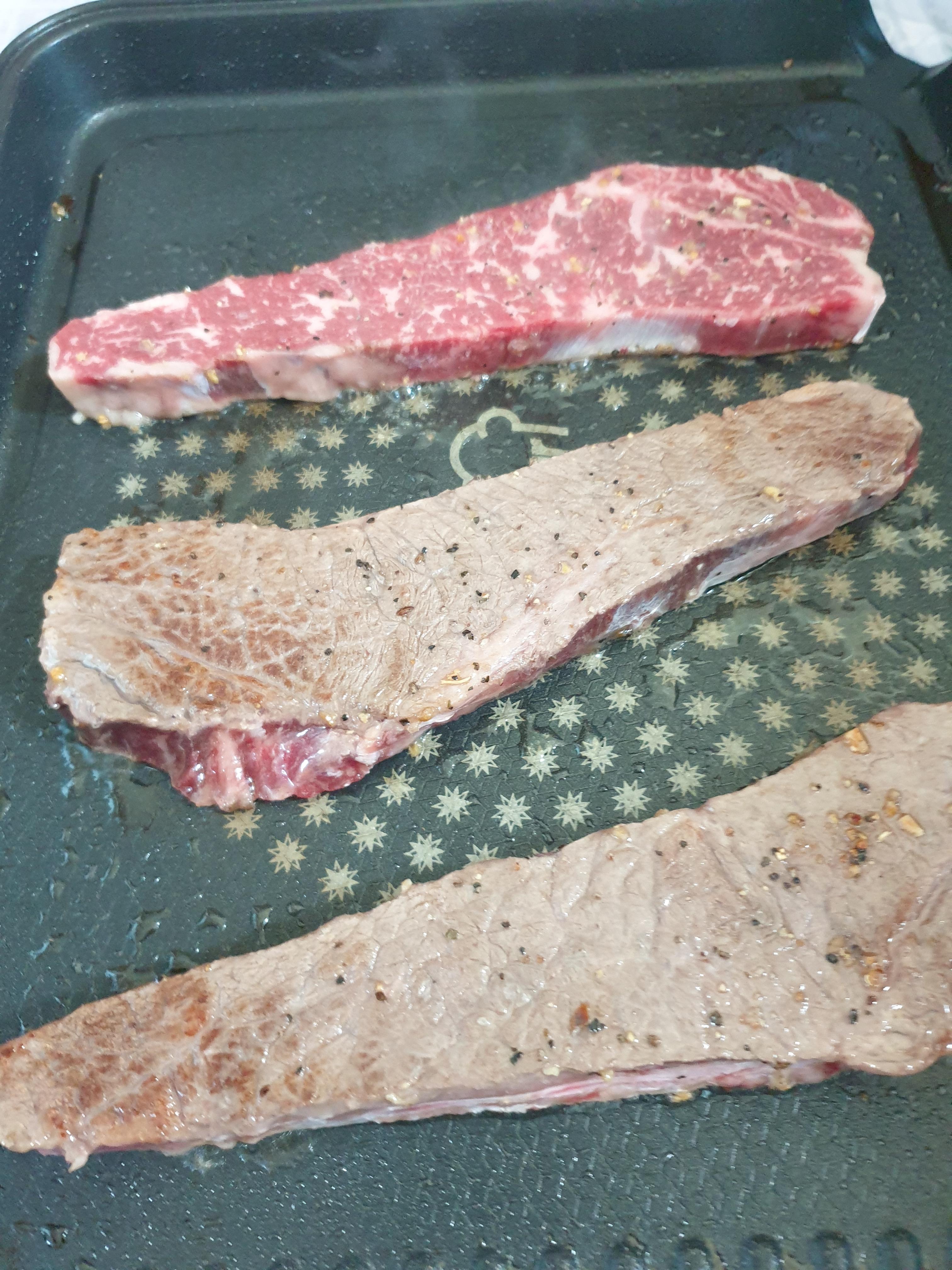 집안 어른 생신이셔서 간만에 정육점에 가서 채끝 스테이크를 구입했습니다.