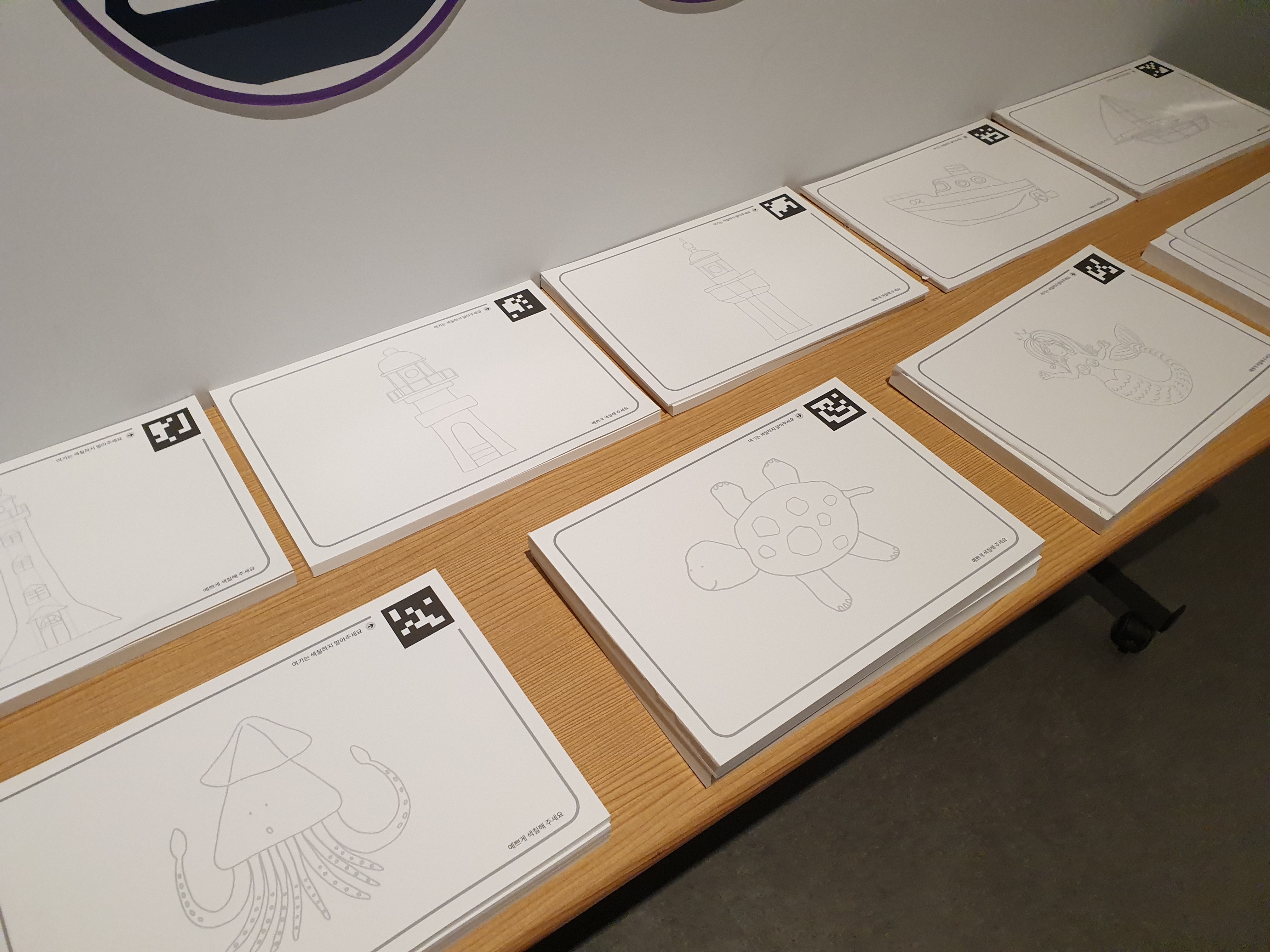 준비되어 있는 스케치 도안에 예쁘게 색칠하고 옆에 준비된 기계로 스캔하면~~