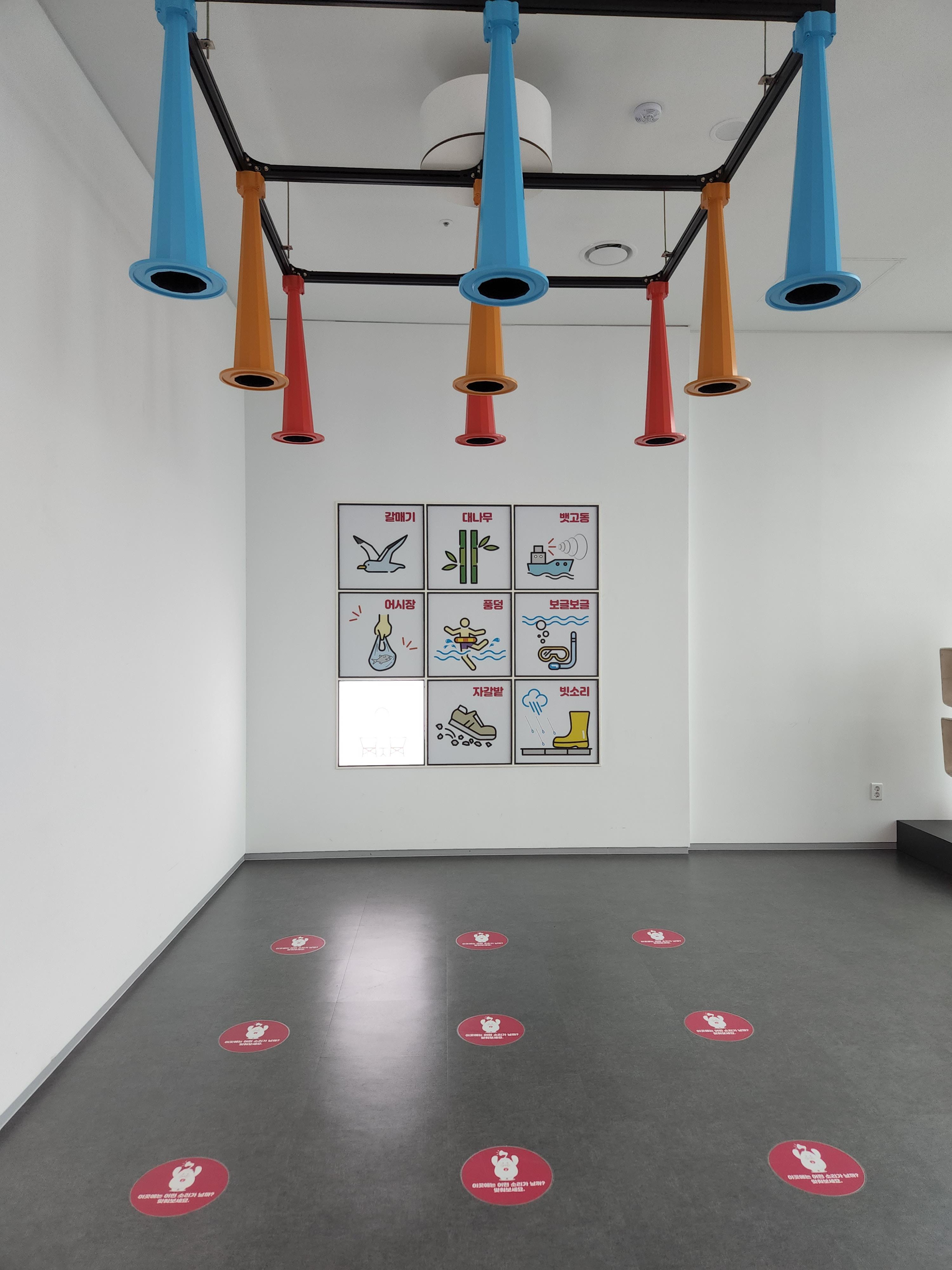 바닥의 빨간 표시에 서 보면 다양한 소리들을 만날 수 있습니다.