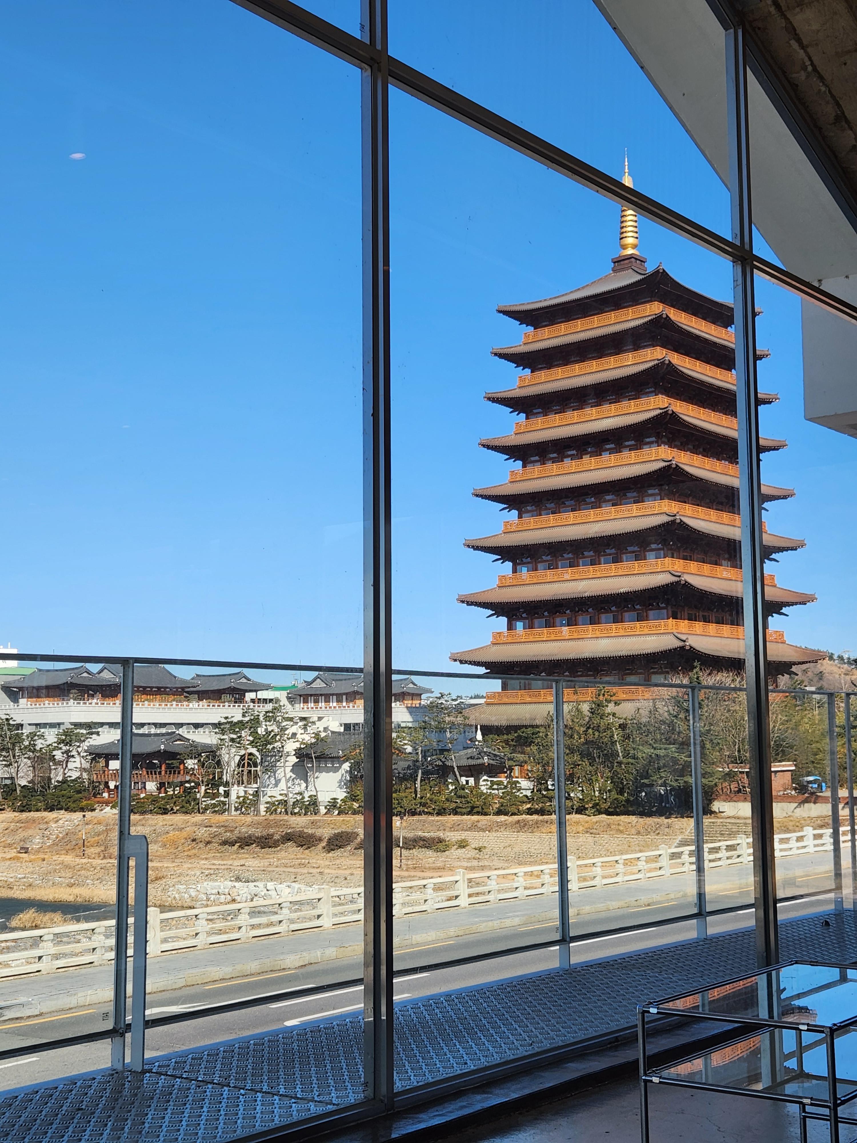 황룡사지 뷰는 2층에서 더 제대로 느낄 수 있네요.