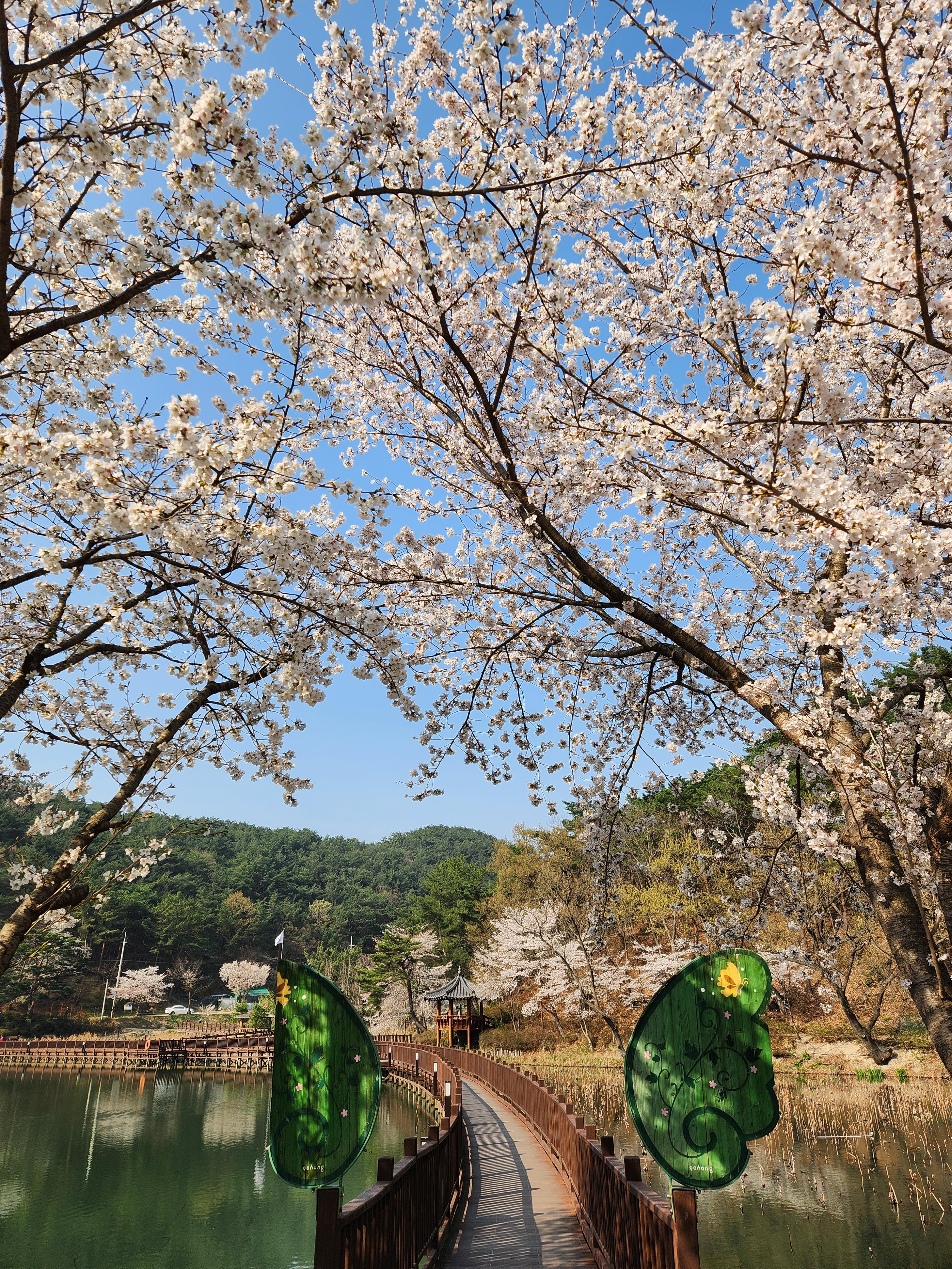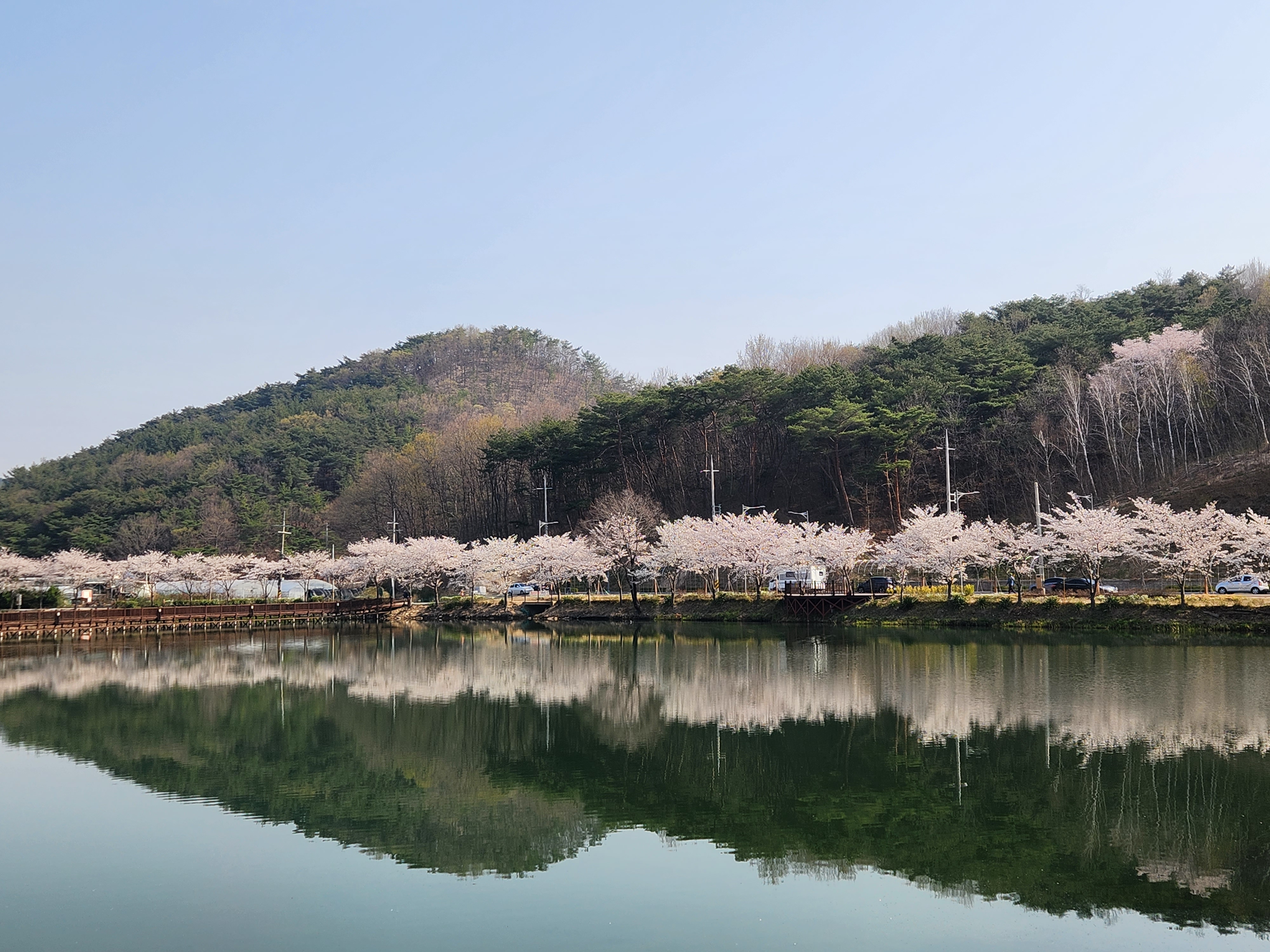 간만에 마장지(창포지)에 산책을 왔습니다. 못 본 사이 벚꽃 만발이네요^^