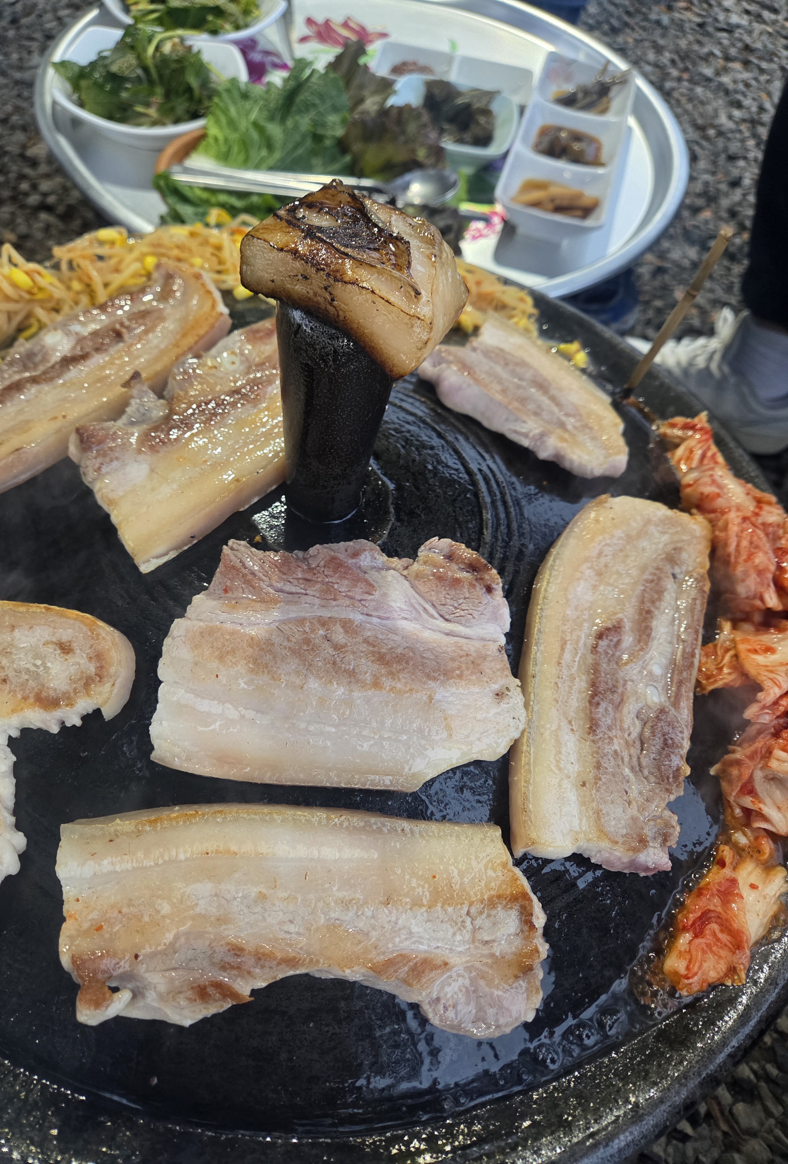 솥뚜껑 위에서 지글지글 구워먹는 삼겹살의 맛이란...