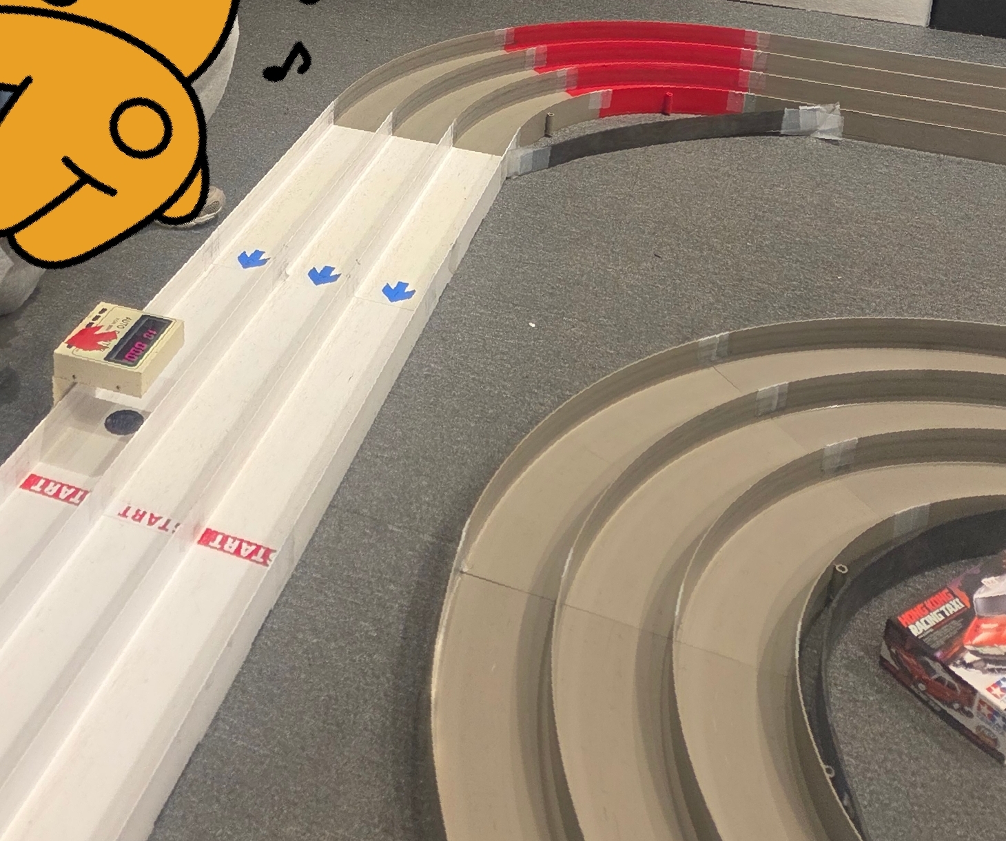 미니카 전원을 켜고 사진 속 스타트 지점에 놓기면 하면 부웅- 하고 출발합니다.