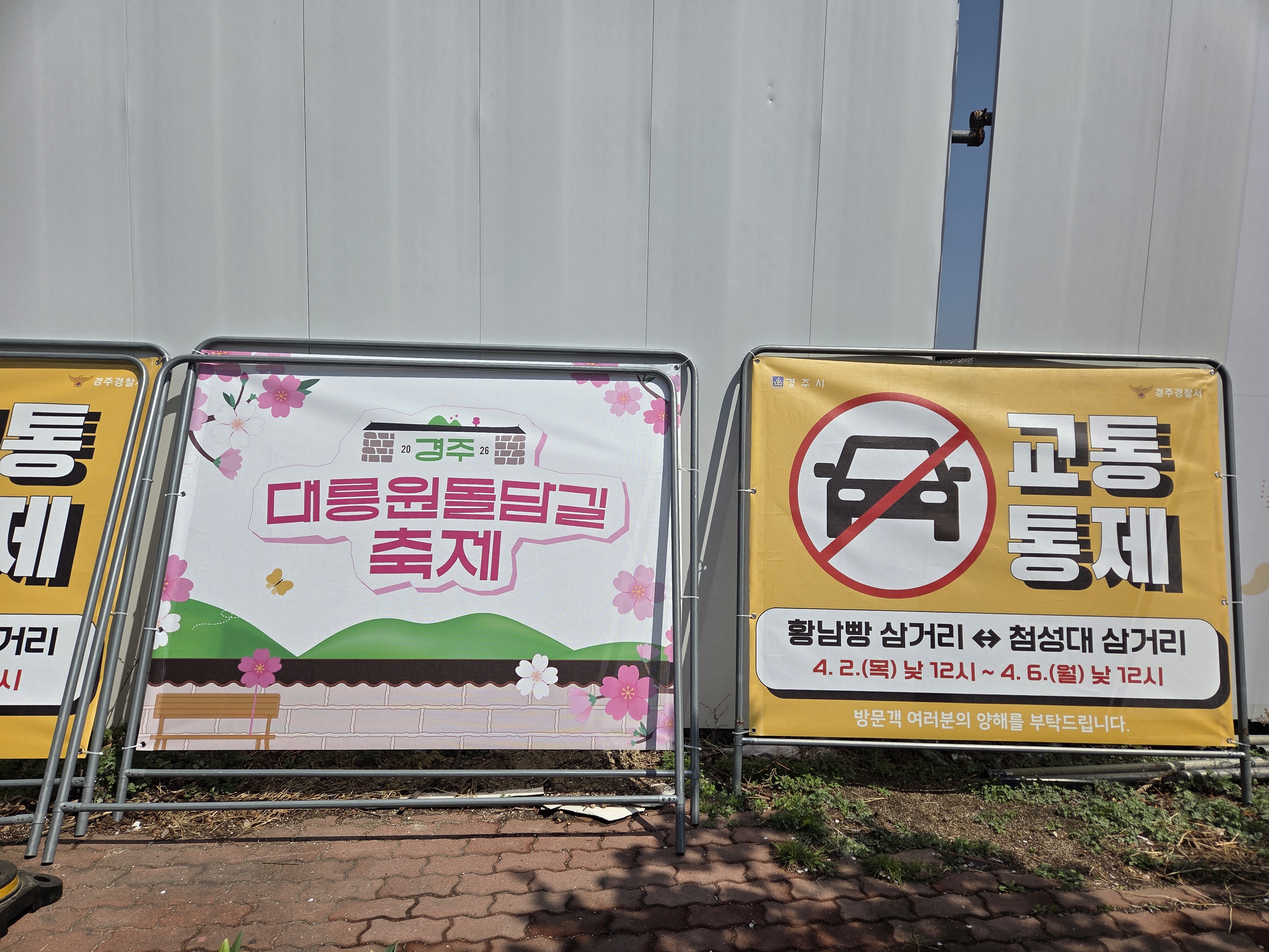 그리고 바로 이곳이 교통 통제중인 대릉원 돌담길!