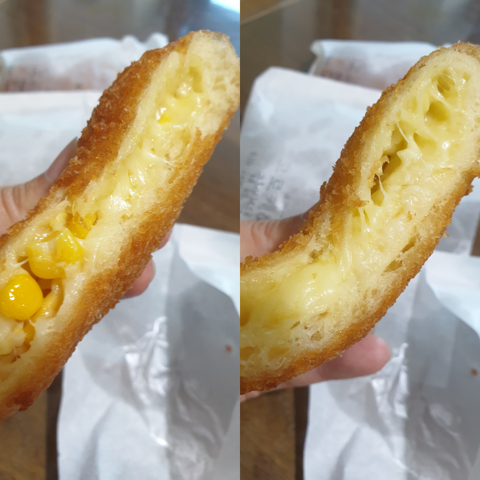 치즈 늘어나는 것 좀 보세요ㅎㅎ 우유랑 꿀조합으로 또 먹고싶은 맛이었어요! 콘치즈는 콘의 씹히는 맛 때문에 기가 막히구요ㅋㅋ