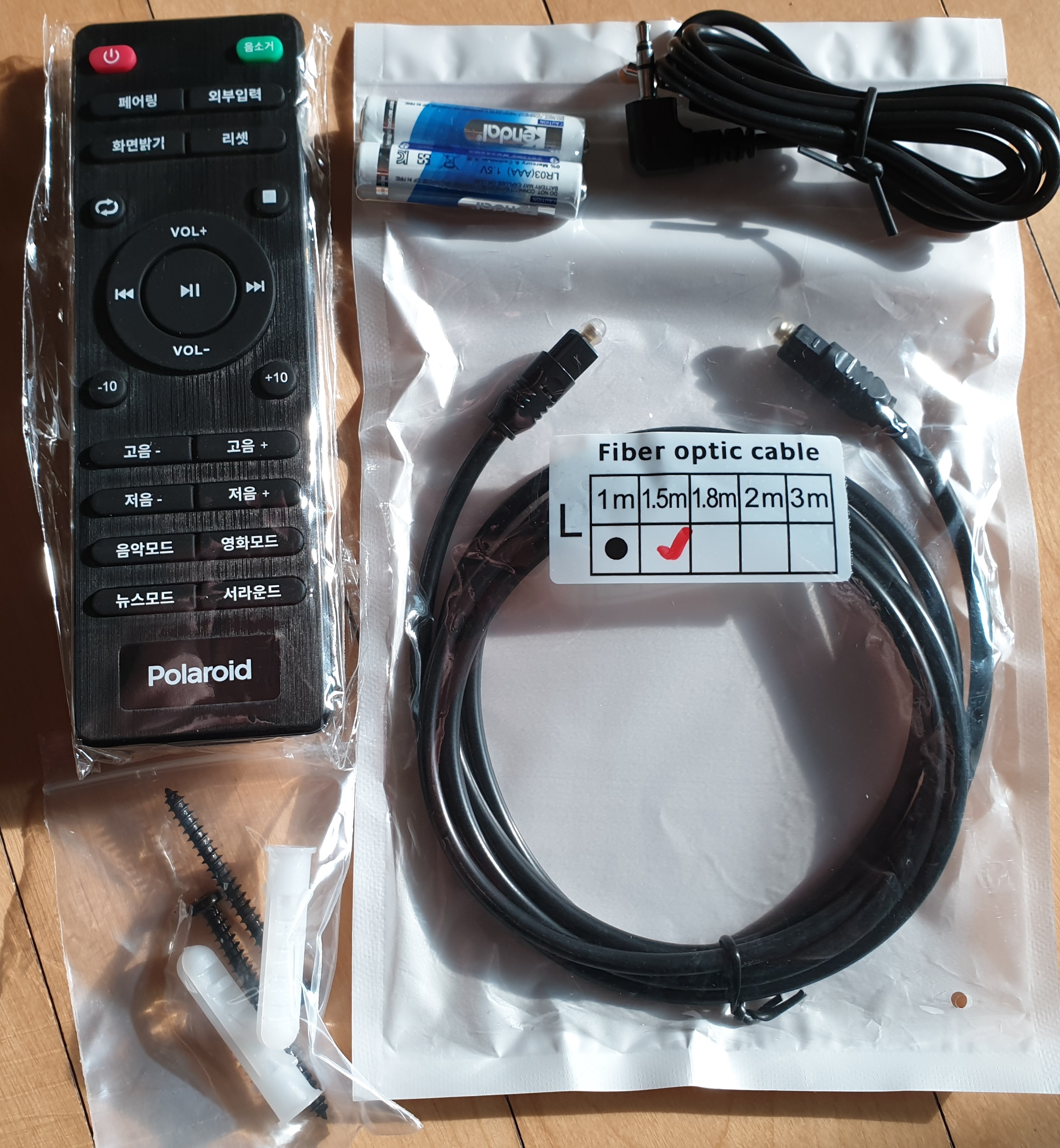 상당히 알찬 구성입니다. HDMI 케이블을 제외하고는 필요한 모든 케이블이 있어요. 요즘 나오는 사운드바에 비해 호완 되는 선들이 상당히 많습니다. 블루투스 연결도 아주 잘됩니다.